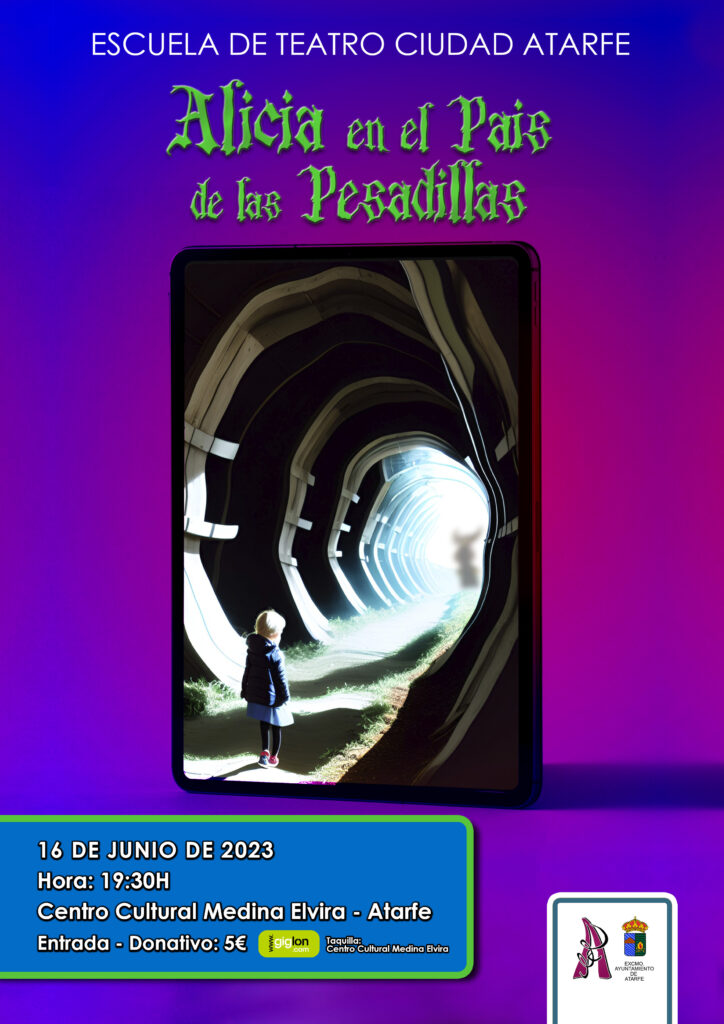 Hoy día 16 de Junio de 2023 a las 19:30h en el Centro Cultural Medina Elvira de Atarfe – Granada tendrá lugar la obra de Teatro » ALICIA EN EL PAIS DE LAS PESADILLAS «.
